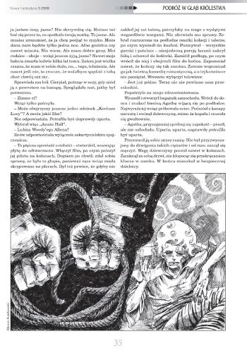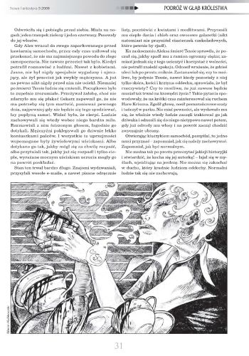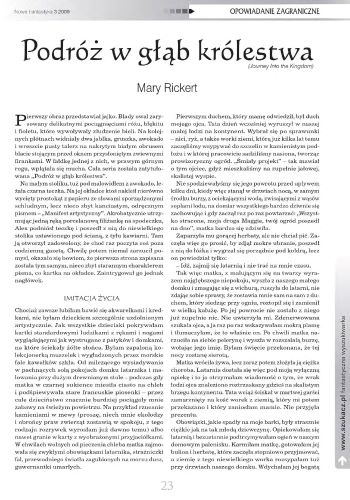 12.3. Рассказ американской писательницы Мэри Рикерт/Mary Rickert, который носит название “Journey into the Kingdom” (2006, “The Magazine of Fantasy and Science Fiction”, May; 2007, ант. ”Best New Romantic Fantasy”; 2010, авт. сб. “Holiday”), перевел на польский язык под названием “Podróż w głąb królestwa/Путешествие вглубь королевства" ГЖЕГОЖ КОМЕРСКИЙ/Grazegorz Komerski (стр. 26—36). Иллюстрации МАРЦИНА КУЛАКОВСКОГО/Marcin Kułakowski.