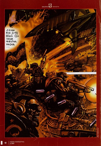 Декабрьский номер 2003 года (162-й «Новой Фантастыки» и 255-й, если считать ab ovo) редактируют: Эдита Есëтр/Edita Jesiotr (художественно-оформительский отдел), Аркадиуш Наконечник/Arkadiusz Nakoniecznik (отдел иностранной литературы, главный редактор), Марек Орамус/Marek Oramus (отдел критики и публицистики), Мацей Паровский/Maciej Parowski (отдел польской литературы, заместитель главного редактора), Кшиштоф Шольгиня/Krzysztof Szolginia (секретарь редакции), Веслава Ярых/Wiesława Jarych (корректура). В списке постоянных сотрудников числятся: Анджей Бжезицкий/Andrzej Brzezicki, Яцек Дукай/Jacek Dukaj, Аркадиуш Гжегожак/Arkadiusz Grzegorzak, Марек Холыньский/Marek Hołyński, Анджей Качоровский/Andrzej W. Kaczorowski, Доминика Матерская/Dominika Materska, Анджей Сапковский/Andrzej Sapkowski, Марек Нововейский/Marek Nowowiejski; Гжегож Щепаняк/Grzegorz Szczepaniak, Бартек Свидерский/Bartek Świderski. Таким образом, из числа постоянных сотрудников журнал лишился Яцека Соботы. В оформлении лицевой стороны передней обложки использована работа польских художников ПЕТРА ЛУКАШЕВСКОГО/Piotr Łukaszewski и ПШЕМЫСЛАВА ТРУСЬЦИНЬСКОГО/Przemysław Truściński. На внутренней стороне передней обложки напечатана реклама книги Александра Брайдака “Paradoks Leibniza”. В «Галерее» представлены работы польского художника ПШЕМЫСЛАВА ТРУСЬЦИНЬСКОГО/Przemysław Truściński (стр. 37—39; 42–44). На внутренней стороне задней обложки напечатана реклама подписки на журнал “Nowa Fantastyka” и “Fantastyka. Wydanie Specjalne”, на внешней – копия одной из живописных работ ПШЕМЫСЛАВА ТРУСЬЦИНЬСКОГО. Тираж номера не обозначен. Цена экземпляра – 7 злотых 40 грошей.
