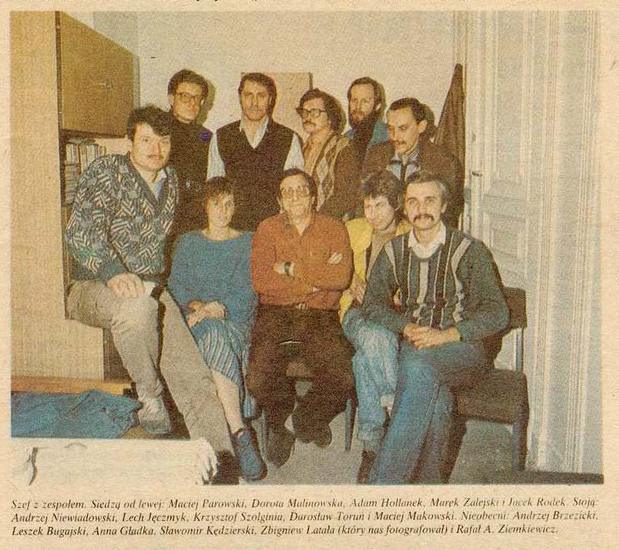 «Первые упоминания о журнале НФ, не имевшем поначалу названия, появляются в январе 1982 года. В нашем доме на Гурношленской стали бывать молодые люди, позже вошедшие в состав коллектива, редактировавшего журнал “Fantastyka”, в дневниках они фигурируют как «молодые люди из круга НФ» или чаще более коротко: «молодежь НФ», «парни НФ», «мои ребята», «мои юные партнеры». Позже мы обнаружили, что на Евроконе в Загребе о коллективе журнала “Fantastyka” говорили столь же ласково: «Hollanek and his boys”.