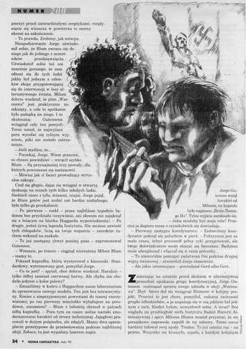 «Для прозы Вольского характерно соединение элементов научной фантастики с horror-ом, детективом, триллером, сказкой, гротеском, мотивами политического кабаре» (Мацей Паровский). Рассказ номинировался на получение премии имени Януша Зайделя, но по какой-то причине позже не перепечатывался. Глянуть на карточку рассказа можно здесь А вот биобиблиографии писателя на сайте ФАНТЛАБ все еще нет. Напомню, что это уже шестая встреча с писателем на страницах нашего журнала (предыдущие см. “Fantastyka” №№ 3/1983, 5/1985, 4/1989; “Nowa Fantastyka” №№ 8/1992, 12/1994).
