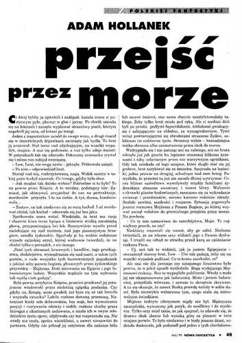 Следующей публикацией – рассказом “Przejść przez morze/Перейти море” читателям этого юбилейного номера журнала напомнили о его первом главном редакторе (1982-1990) – писателе, поэте, популяризаторе науки, журналисте и мемуаристе Адаме Холлянеке/Адам Hollanek (04.10.1922 – 28.07.1998) (стр. 49-53). Иллюстрации РОБЕРТА АДЛЕРА/Robert H. Adler.