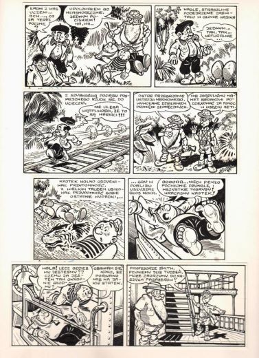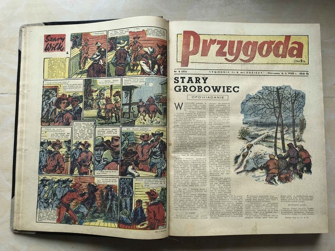 и в еженедельном журнале комиксов «Przygoda», издававшемся в течение двух лет (1957—1958) после оттепели (цикл «Kuku Ruku/Кук и Рук»).