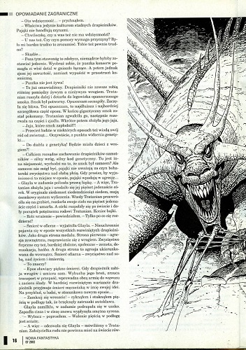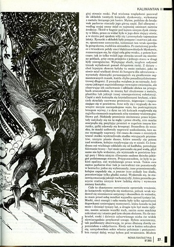 7. Повесть американского писателя Люциуса Шепарда/Lucius Shepard, которая называется в оригинале “Kalimantan” (1990, “Kalimantan”; 1990, авт. сб. “Kalimantan”; 1993, авт. сб. “Kalimantan ”), перевел на польский язык под названием “Kalimantan/Калимантан” ТОМАШ ГАЛОНЗКА /Tomasz S. Gałązka (стр. 13-29). Иллюстрации МОНИКИ РОКИЦКОЙ/Monika Rokicka. В номере напечатана первая часть перевода.