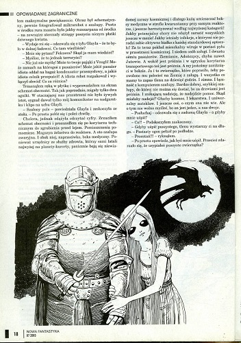 2. Новеллу американского писателя Люциуса Шепарда/Lucius Shepard, которая называется в оригинале “Barnacle Bill the Spacer” (1992, ”Isaac Asimov’s SF Magazine”, July; 1995, ант. “Hugo and Nebula Award from Asimov’s Science Fiction”; 1997, авт. сб. “Barnacle Bill and Other Stories”), перевел на польский язык под названием “Ballada o Billu Pąklarzu” МИХАЛ ЯКУШЕВСКИЙ/Michał Jakuszewski (стр. 8-16; 25-31). Иллюстрации МОНИКИ РОКИЦКОЙ/Monika Rokicka. В номере напечатана вторая (заключительная) часть перевода.