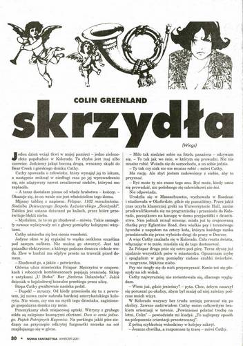 4. Рассказ американского писателя Колина Гринленда/Colin Greenland, который называется в оригинале “Wings” (2001, ант. “Starlight 3”), перевел на польский язык под названием “Skrzydła/Крылья” РАФАЛ ВИЛЬКОНЬСКИЙ/Rafał Wilkoński (стр. 30-36). Иллюстрации МАРЕКА АДАМИКА/Marek Adamik.