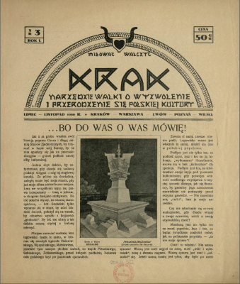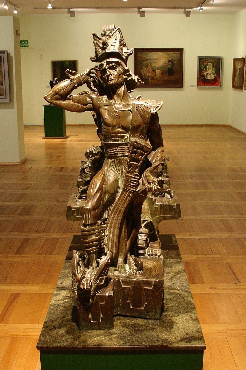 В 1926 году польский художественный мир испытал потрясение. Непосредственным виновником этого события был проект памятника Адаму Мицкевичу в Вильно, согласно которому образ нашего великого поэта-пророка представляло его возлегающее на ступенчатой пирамиде (взятой живьем из искусства доколумбовой эпохи), обнаженное тело, кормящее орла сочащейся из сердца кровью. Орел, в свою очередь, восседал на радужной дуге, распростерши крылья над фигурой Мицкевича.