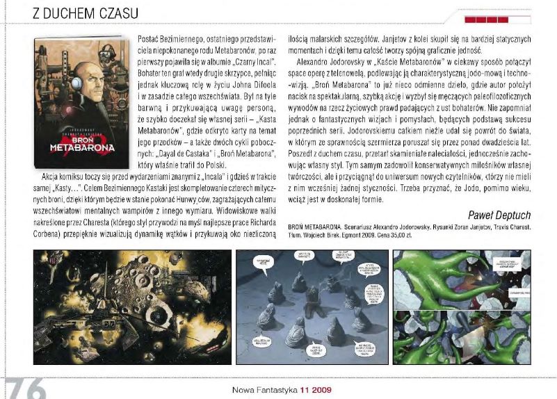 ”Broń Metabarona”. Scenariusz Alexandro Jodorowski. Rysunki Zoran Janjetov, Travis Charest. Tłum. Wojciech Birek. “Egmont”, 2009 («Оружие Метабарона». Сценарий Алехандро Ходоровского. Рисунки ЗОРАНА ЯНЬЕТОВА, ТРЕВИСА КАРЕСТА. Пер. ВОЙЦЕХА БИРЕКА. “Egmont”, 2009)