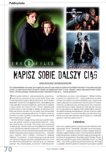 8. Очередная статья о любительских литературных и киношных «фанфиках» Аркадиуша Гжегожака/Arkadiusz Grzegorzak “Napisz sobie dalszy ciąg/Напиши себе продолжение”, размещена в рубрике “Publicystyka” (стр. 70—71). Нет, возвращаться не будем. И в самом деле, сколько можно возвращаться…