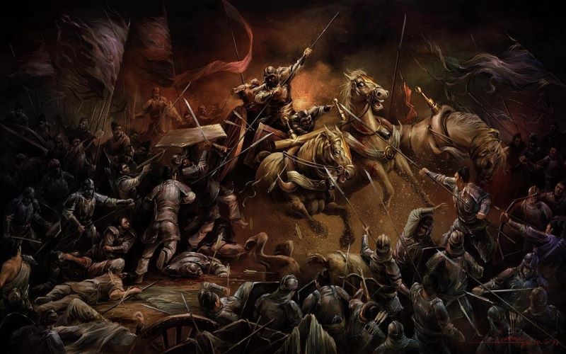 Основное оружие в войске – не меч, а древковое оружие, способное поражать на большем расстоянии, чем меч. У конных воинов таким оружием является копье, удерживаемое в одной руке и используемое при атаке.