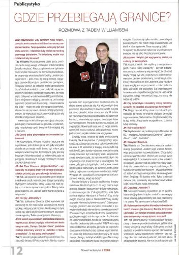 13. На страницах 12–13 напечатано интервью, которое Ежи Жимовский (Jerzy Rzymowski) взял у американского писателя НФ и фэнтези Тэда Уильямса (Tad Williams, наст. Robert Paul Williams). Интервью носит название: