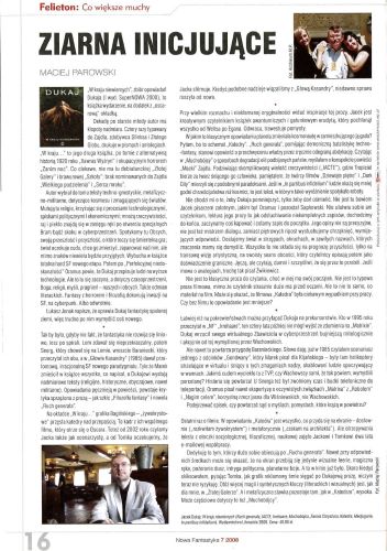 14. В рубрике «Felieton» на стр. 16 расположена реплика-рецензия Марека Паровского/Naciej Parowski, касающаяся выхода из печати нового авторского сборника польского писателя Яцека Дукая/Jacek Dukaj. Текст носит название: