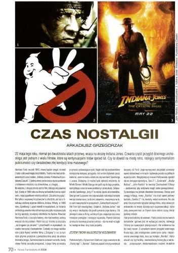 6. Статья Аркадиуша Гжегожака/Arkadiusz Grzegorzak ”Czas nostalgii/Пора ностальгии” поcвящена возврату на экраны кинотеатров после почти 20-летнего перерыва Индианы Джонса (стр. 70—71