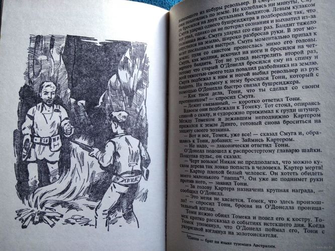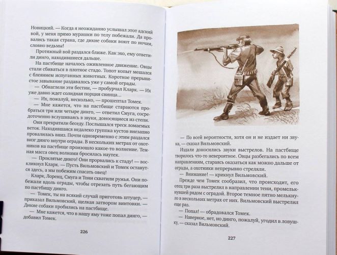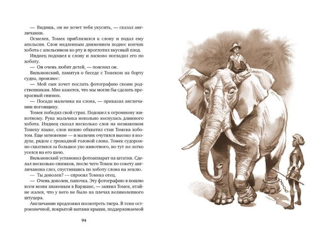 А вместе с нею, к сожалению, и цепочка длинных, скучных фрагментов, которые выглядят так, будто их скопировали прямиком из энциклопедий и других научных книг: исторических, этнографических, географических и касающихся биологии, в основном зоологии. Томек предстает перед читателем как образованный, но в то же время открытый для дальнейшего обучения мальчик, а все взрослые персонажи — как ходячие сокровищницы скрупулезных знаний: то об истории и географии местности, в которой они аккурат сейчас находятся, то о тамошней флоре и фауне. Мальчик то и дело о чем-то спрашивает, поэтому утомительные в конечном счете описания составляют большую часть не только повествования, но и диалогов, становящихся по этой причине почти что монологами.