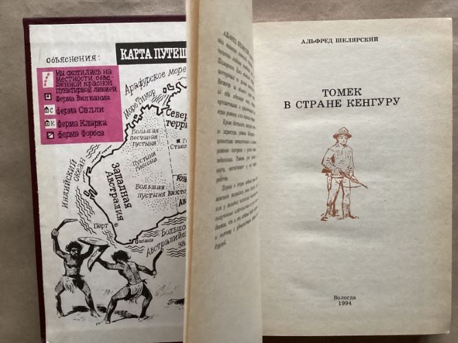 Далее – 1-й том из четырехтомника «Альфред Шклярский. Сочинения в 4-х томах» — М.: Терра, 1995. В томе два романа «Томек в стране кенгуру» и «Приключение Томека на Черном континенте». См. ЗДЕСЬ Фраза из “Описания”: «Иллюстрация на обложке и внутренние иллюстрации М.Ф. ПЕТРОВА» не более чем домыслы. Фактически верно, возможно, то, на что указывается в примечании – «Внешнее оформление М. ПЕТРОВА», да и то имеются большие сомнения: иллюстрация на обложке и внутренние иллюстрации безусловно принадлежат Ю. МАРЕКУ, характерная сеточка-«рамка» тоже изобретена отнюдь не М. ПЕТРОВЫМ, так где же здесь авторская работа?