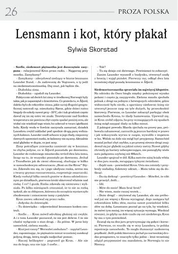 15.2. Рассказ “Lensmann i kot, który płakał/Ленсман и кот, который плакал” написала Сильвия Скорстад/Silvia Skorstad (стр. 26—34). Иллюстрации НИКОДЕМА ЦАБАЛЫ/Nikodem Cabała.