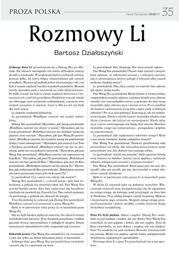 15.3. Рассказ “Rozmowy Li/Разговоры Ли” написал Бартош Дзялошиньский/Bartosz Działoszyński (стр. 35 -- 38). Иллюстрации ТОМАША НЕВЯДОМСКОГО/Tomasz Niewiadomski.