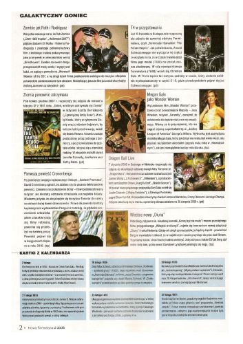 а Павел Матушек сообщает об издании замечательного романа американского писателя Дэна Симмонса «Гиперион» (Dan Simmons “Hyperion”. Tłum. Arkadiusz Nakoniecznik. “MAG”, 2007) (стр. 66–68).