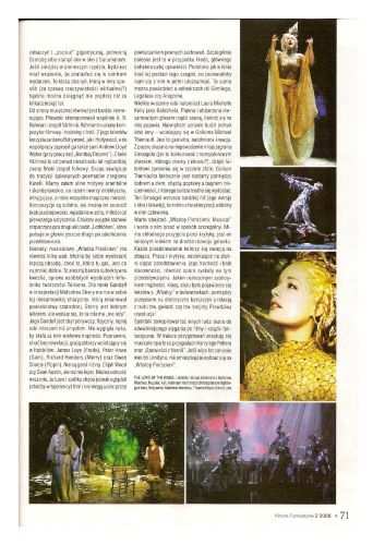 6. Печатается также статья Аркадиуша Гжегожака/Arkadiusz Grzegorzak «Фантастические мюзиклы: «Властелин колец» (стр. 70—71) — о мюзикле под этим названием, премьера которого состоялась в Канаде (в Princess of Wales Teatre) и в настоящее время пользуется огромным успехом на сцене лондонского Theatre Royal Drury Lane).