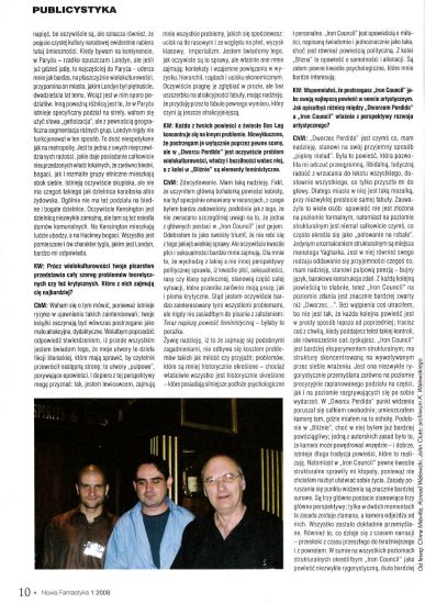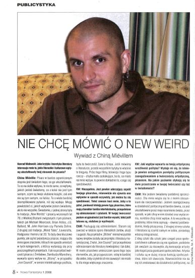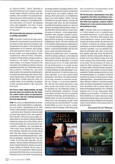 11. Довольно-таки объемистое интервью, взятое Конрадом Валевским/Konrad Walewski у британского писателя Чайны Мьевиля/Chuna Miéwill, напечатано на стр. 8–10, 12 под названием: