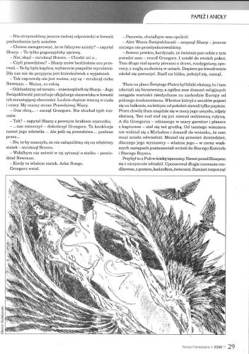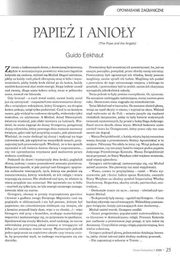 12.2. Рассказ бельгийского (фламандского) писателя Гвидо Экхаута/Guido Eekhaut, который называется в оригинале «The Pope and the Angels», перевел на польский язык под названием «Papież I anioły/Папа и ангелы» ТОМАШ ГАЛОНЗКА/Tomasz S. Gałązka (стр. 25–-30). (Вообще-то оригинальное название рассказа “De paus en de engelin” и напечатан он был в антологии “Tweede Ragnarok: SF jaarboek 1995” в 1994 году, а затем, уже после публикации в нашем журнале, вошел в состав одноименного авторского сборника в 2009 году. Но писатель известен тем, что сам переводит свои произведения на английский язык. Так что вероятнее всего польский переводчик действительно получил сей рассказ в указанном переводе в рукописи. W.)