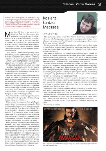 2. На стр. 3 напечатана рецензия польского журналиста Якуба Цьвека на фильм “Navaja” (реж. Роберт Родригес, США). Ну, казалось бы, рецензия как рецензия, но рецензент почему-то высказывает сожаление и приносит соболезнование читателям и зрителям по случаю преждевременной смерти Дэнни Трэхо (а этот замечательный актер, один из моих любимейших, кстати, и ныне, в 2025 году, жив-здоров и дай ему Бог еще многих лет жизни), иллюстрация тут еще мутная какая-то. Обойду-ка я эту статью стороной…