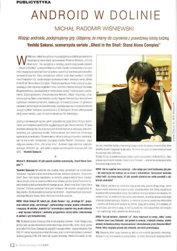 4. И еще одна статья в рубрике «Публицистика» — Михала Радомира Висьневского/Michał Radomir Wiśniewski “Android w dolinie/Андроид в долине” (стр. 12--14). Собственно, это интервью, которое Михал Р. Висьневский взял у Ëшики Сакураи/Yoshiki Sakurai, сценариста сериала “Ghost in the Shell: Stand Alone Complex”…
