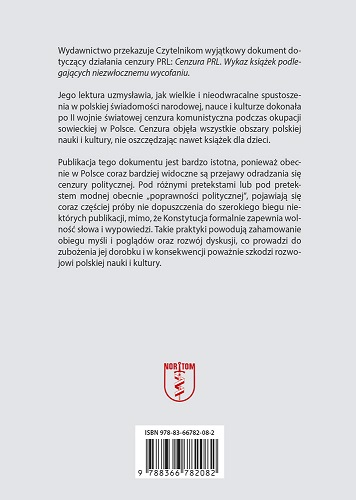 Первые три секретных списка опубликовало после 2000 года вроцлавское издательство “Nortom”. Особенно яростному гонению подвергались религиозная литература и популярные исторические труды, связанные с восточными окраинами (“кресами”), Армией Крайовой, харцерством и польскими силами на Западе. К уничтожению были приговорены произведения Александра Каминьского/Aleksander Kamiński, автора «Камней для окопа/Kamieni na szaniec»,