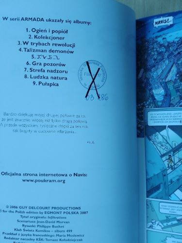 Jean-David Morvan, Philippe Buchet: “Armada # 9: Pulapka”. ”Egmont”, 2007 (Жан-Давид Морван, ФИЛИПП БЮШЕ «Армада № 9: Ловушка». “Egmont”, 2007).