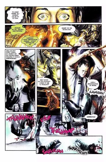 И таким образом мы имеем «В этих голубых глубинах скрывается ад» Hines и Lago, «Каноны боли» Saltzgaber-а и Bolton-а – обе истории переносят нас в далекое прошлое. Дальше размещается своеобразный художественный триптих в исполнении Strand-а и Chiarello («Прежде всего лицо»), Atkins-а и Dorman-а («Гимн металла и тела»), а также Nutman-а и Koeb-а («Роскошная ложь»), где поочередно актер, композитор и художник взбираются на вершины страдания и создают искусство безумия. Далее следуют волнующие «Шкафы» Wachowski и Kim-а, коварный «Трупы гниют» Chichester-а и Mignol-ы и “Wordsworth” Gaiman-а и McKean-а. Завершают целое «Лабиринт разума» Nelson-a, наиболее погруженный в мифологию Hellraiser-а. Выбор, совершенный издательством “Egmont”, интригует интересными историями и графическими крайностями. Это великолепный путеводитель по популярному миру, который показывает, что в нем кроется огромный потенциал. Однако мурашки бегут по коже, когда вспоминаешь о таких творцах, как McKeeper, Wrightson, Texer или Keith, чьи жуткие истории не были использованы в этом томе.