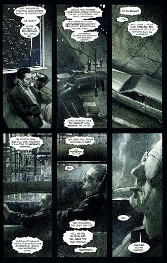 Авторы замечательно показали боль мальчика из-за невозможности участия в определенных взаимоотношениях мужчины и женщины, его раздражительность, его взгляды украдкой на женские округлости. А те – ну, вполне себе. РИССО известен у нас благодаря серии комиксов «110 патронов» и прекрасно себя чувствует в черно-белой конвенции. Его четкая и слегка загрубленная линия мастерски вырисовывает большинство планов. Умелое использование больших черных пятен углубляет ощущение объемности и повышает достоверность представления Америки, которая также является героиней комикса. Хотя герои комикса происходят из Египта, это история о темной стороне США. Здесь полным-полно постмодернистских отсылок к достижениям американской поп-культуры: «Последнему из могикан», «Бонни и Клайду» и «Танкистке». И, подобно танку последней, действие комикса ускоряется от панели к панели. Будем надеяться, что мы столь же вскоре дождемся очередного тома этой четырехтомной серии.