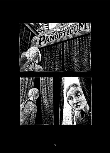 ОТТ вновь прибегает к своим излюбленным средствам выражения, то есть гротеску и макабру, подчеркнутыми черным юмором, хотя этим разом комиксу не хватает элементов черного юмора. “Cinema Panopticum” не обманывает ожиданий. В этом альбоме мы находим визуальное извращение того же типа, что и в альбоме “Exit”. Видно также, что главный недостаток специфического творчества швейцарца – анекдотичность его эпизодов, которые не могут развиться в более длинные и сложные истории. Однако художник сознательно использует как достоинства, так и недостатки своего стиля.