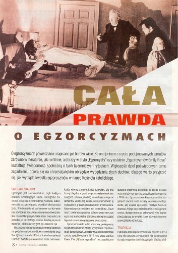 4. В статье Матеуша Спыхалы/Mateusz Spychała “Cała prawda o egzorcyzmach/Вся правда об экзорцизмах” дается понятие об этом весьма специфическом христианском обряде и его месте в науке и практике католической церкви (стр. 8--9).