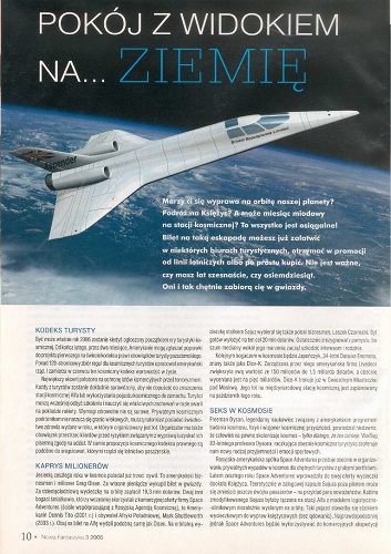 5. “Pokoj z widokiem na… Ziemie/Гостиничный номер с видом на… Землю” – так называется статья Адама Сыновца/Adam Synowiec (стр 10--11). Коммерческие полеты в космос, космический туризм (каприз миллионеров).