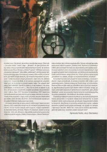 Интересно презентуются картины применения новых источников энергии. К возможности получения энергии из атома весьма скептически относились даже сами ученые того времени, хотя физические теории, способные привести к созданию атомной бомбы, переживали стремительное развитие. Писатели НФ делали ставку на солнечную энергию – которая, как у Винавера, при соответствующем применении должна была обеспечить человечеству вечное счастье. В свою очередь у Смолярского в «Городе Света» она служит оружием и приводит машины в движение. Интересную реализацию этого сюжета можно найти в романе «Крутой летчик (Летчик-сумасброд)»Казимежа Чижовского (Kazimierz Czyżowski “Szałony lotnik”, 1925), где изобретение Анджея Лëта спасает человечество от гибели в результате землетрясений. Лëт предлагает строительство городов на огромных железобетонных платформах; электричество получают благодаря трансформаторам солнечной энергии, главной частью которых были «удивительные стеклянные трубы, подразделявшиеся на трубы лучепоглощательные и лучеизлучающие».