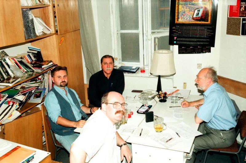 Лех Енчмык: Ну, я был там недолго. Подозреваю, что мои коллеги весьма справедливо меня изгнали, потому что я, вероятно, не уделял журналу достаточно времени. Например, для Мацека Паровского журнал был делом всей его жизни, а что касается меня... Дул ветер перемен, я немного увлекся политикой, сразу после 1990 года мне показалось, что пришло время таких, как я. В итоге некоторое время у меня были три штатных работы одновременно, так что, возможно, я немного забросил редакцию. Однако коллектив был отличный. Редакция действовала в своем ритме, Орамус занимался своей работой, Паровский – своей. Тогда мы были группой близких друзей. Это было чрезвычайно приятно. Редакция, наверное, напоминала редакции газет XIX века. Кто угодно мог зайти, получить чашку кофе или банку пива, и тут же начинался разговор о чем угодно, но из этих разговоров кристаллизовались темы рассказов и статей. Это была кузница замыслов, идей, нечто совершенно не обычное. В сегодняшних редакциях редактор спрашивает: «Может, кофе?», а сам звонит или уходит в другую комнату. Разговора нет. «Фантастыка» было местом работы, но действовала также как постоянный клуб. На такую атмосферу я наткнулся в Советском Союзе в 1960-е годы, когда был в гостях у местных издательств. Компания собиралась к десяти часам, затем был перерыв на завтрак, который длился часа два, на столе зачастую стояла бутылка, двери на замке… условный стук… Это были очень интересные разговоры, я многое тогда узнал из слухов и анекдотов об истории Советского Союза.