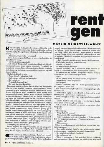 Рассказ «Rentgen/Рентген», вариацию темы сосуществования людей и киборгов, написал Марцин Осикович-Вольфф/Marcin Osikowicz-Wolff (стр. 54-56). Иллюстрации МАРЕКА АДАМИКА/Marek Adamik.