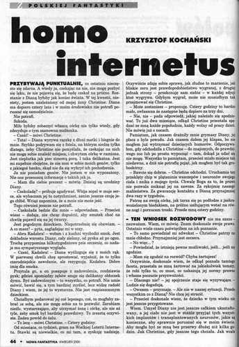 Рассказ “Homo Internetus” написал Кшиштоф Коханьский/Krzysztof Kochanski. Иллюстрации РОБЕРТА АДЛЕРА/Robiert H. Adler (стр. 44-48).