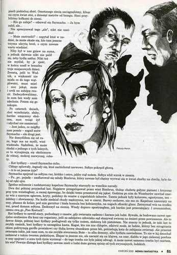 Нам уже приходилось встречаться с автором рассказа на страницах нашего журнала (см. “Nowa Fantastyka”, 7/2001). Поскольку биобиблиографического портрета писательницы на сайте ФАНТЛАБ нет, мною была подготовлена соответствующая справка, которую можно отыскать в этом блоге под тэгом «Снихур Е.». Справка эта нуждается в некотором уточнении, чему и будет посвящен следующий пост. Из него, собственно, станет понятно, почему в карточке ФАНТЛАБА, которую можно увидеть ЗДЕСЬ рассказ «Одна улыбка вампира» приписана другому человеку (что вообще-то не есть хорошо — еще раз гляньте на журнальную страницу).