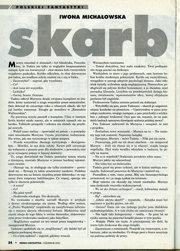 В 2001 году (“Nowa Fantastyka” № 10) мы уже читали интересный рассказ писательницы о несколько необычном педагогическом эксперименте и его не менее необычайных последствиях, здесь же пани Ивона описывает проведение еще одного эксперимента – на этот раз социологического. Рассказ не перепечатывался, на русский язык (на другие языки, впрочем, также) не переводился. Его карточки, равно как и биобиблиографии автора в базе сайта ФАНТЛАБ нет. Однако кое-что об авторе можно узнать, пройдя в этом блоге по тэгу «Михаловская И.».