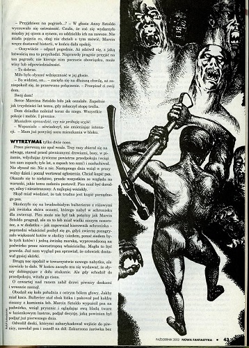И последняя публикация в этой рубрике (под заголовком “Tęczowy połów/Из редакторской папки”) – подборка «перлов», выловленных редактором издательства “superNOWA” Мирославом Ковальским/Mirosław Kowalski из рукописей польских писателей фантастики (стр. 43-44).