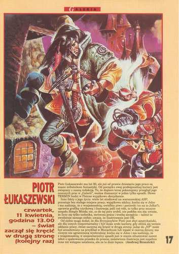 Апрельский номер 1995 года (58-й «Новой Фантастыки» и 151-й, если считать ab ovo), редактируют: Анджей Бжезицкий/Andrzej Brzezicki (художественно-оформительский отдел), Дорота Малиновская/Dorota Malinowska (отдел иностранной литературы), Марек Орамус/Marek Oramus (отдел критики и публицистики), Тереза Пайдиньская/Teresa Pajdińska (корректура), Мацей Паровский/Macej Parowski (отдел польской литературы, главный редактор), Ганна Сосиньская-Бальцер/Hanna Sosińska-Balcer(технический отдел), Кшиштоф Шольгиня/Krzysztof Szolginia (секретарь редакции). В списке постоянных сотрудников числятся: Вальдемар Чернишевский/Waldemar Czerniszewski; Адам Холлянек/Adam Hollanek, Яцек Инглëт/Jacek Inglot, Лех Енчмык/Lech Jęczmyk, Анджей Качоровский/Andrzej W. Kaczorowski, Славомир Кендзерский/Sławomir Kędzierski, Аркадиуш Наконечник/Arkadiusz Nakoniecznik, а также Denuncjator, Inkwizitor, Karburator, Kunktator, Negocjator, Predator, Reanimator, Sekator, Wentylator и Wibrator. Тираж – 90 тысяч экземпляров. В оформлении передней обложки использована работа польского художника ПЕТРА ЛУКАШЕВСКОГО/Piotr Łukaszewski. Эксперимент с использованием журнала в качестве входного билета на киносеанс продолжается. На этот раз читателей-киноманов приглашают на показ фильма “Uliczny wojównik/Street Fighter, Уличный боец”. На внутренней стороне передней обложки рекламируется фильм «Тупой и еще тупее». В «Галерее» этого номера читателей вновь ждет встреча с художниками издательства TSR (КЛАЙДОМ КОЛДУЭЛЛОМ/Clyde Caldwell, ГЛЕНОМ ОРБИКОМ/Glen Orbik, ФРЕДОМ ФИЛДСОМ/Fred Fields, ДЖЕФФОМ ИСЛИ/Jeff Easly, ДЖОНОМ и ЛАУРОЙ ЛЭКИ/John and Laura Lakey, ЛЭРРИ ЭЛМОРОМ/Larry Elmore, РОДЖЕРОМ РАУППОМ/Roger Raupp, ЭРИКОМ ОЛСОНОМ/Eric Olson) (стр. 17-24). Заднюю обложку описать не могу, поскольку в моем экземпляре журнала она отсутствует.