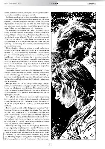 14.2. Рассказ “Kurtyna/Занавес” написал Лукаш Кулевский/Łukasz Kulewski(стр. 45—54). Иллюстрации РАФАЛА ШЛАПЫ/Rafał Szłapa. Рассказ был написан и прислан на литературный конкурс, объявленный журналом, и оказался отмеченным жюри.