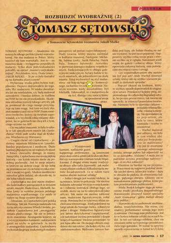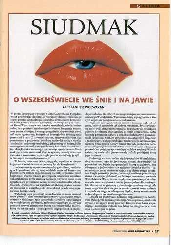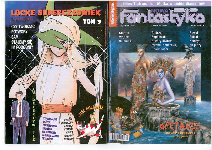 Июньский номер 2000 года (120-й «Новой Фантастыки» и 213-й, если считать ab ovo) редактируют: Анджей Бжезицкий/Andrzej Brzezicki (художественно-оформительский отдел), Аркадиуш Наконечник/Arkadiusz Nakoniecznik (отдел иностранной литературы), Марек Орамус/Marek Oramus (отдел критики и публицистики), Тереза Пайдзиньская/Teresa Pajdzińska (корректура), Мацей Паровский/Maciej Parowski (отдел польской литературы, главный редактор), Кшиштоф Шольгиня/Krzysztof Szolginia (секретарь редакции), Веслава Ярых/Wiesława Jarych (корректура). В списке постоянных сотрудников числятся: Бартек Хациньский/Bartek Chaciński, Михал Дадаев/Michal W. Dadajew, Яцек Дукай/Jacek Dukaj, Марек Холыньский/Marek Hołyński, Яцек Инглëт/Jacek Inglot, Лех Енчмык/Lech Jęczmyk, Анджей Качоровский/Andrzej W. Kaczorowski, Кшиштоф Липка/Krzysztof Lipka, Анджей Колодыньский/Andrzej Kołodyński, Дорота Малиновская/Dorota Malinowska, Доминика Матерская/Dominika Materska, Анджей Сапковский/Andrzej Sapkowski, Войтек Седенько/Wojtek Sedeńko, Яцек Собота/Jacek Sobota, Agregator, AligatorAnihilator, Karburator, Kunktator, Negocjator, Predator; Reanimator и Terminator. Тираж номера – 55,4 тысяч экземпляров. В оформлении передней обложки использована работа польского художника ТОМАША СЕНТОВСКОГО/Tomasz Sętowski, а в «Галерее» (стр. 17-24) представлены работы ВОЙТЕКА СЮДМАКА/Wojtek Siudmak. На внутренней стороне передней обложки размещен рекламный плакат фильма “Pitch Black”. На внешней стороне задней обложки напечатана реклама комикса “Locke Superczłowiek”, t. 3. Внутреннюю сторону задней обложки я, к сожалению, не вижу. Цена экземпляра -- 5 злотых 50 грошей.