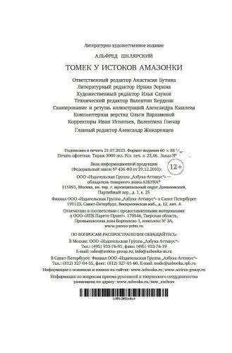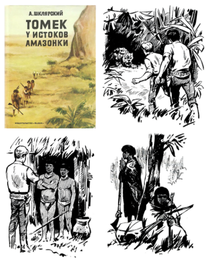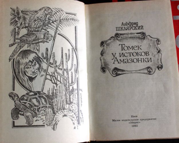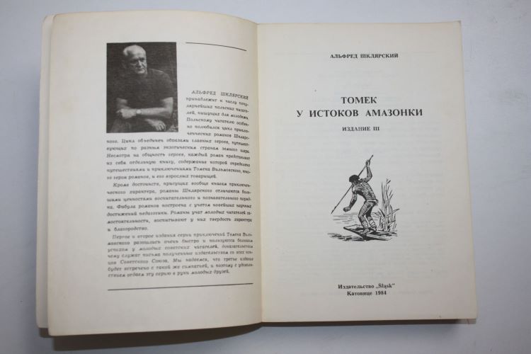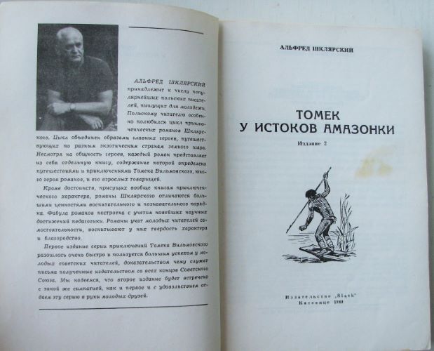 Итак, переводы на русский язык. И вновь переводом седьмого романа цикла Шклярского на русский язык первым озаботилось родное издательство “Śląsk”. В 1972 году роман “Tomek u zródeł Amazonki” был им издан под названием «Томек у истоков Амазонки» в переводе Е. ШПАКА, в твердом переплете и с суперобложкой, с рисунками на обложке и суперобложке и внутренними иллюстрациями, конечно же, ЮЗЕФА МАРЕКА. Книга была переиздана в 1980 и 1984 годах уже в мягкой обложке (и с рисунком Ю. МАРЕКА, фигурировавшим ранее на суперобложке, на ней).