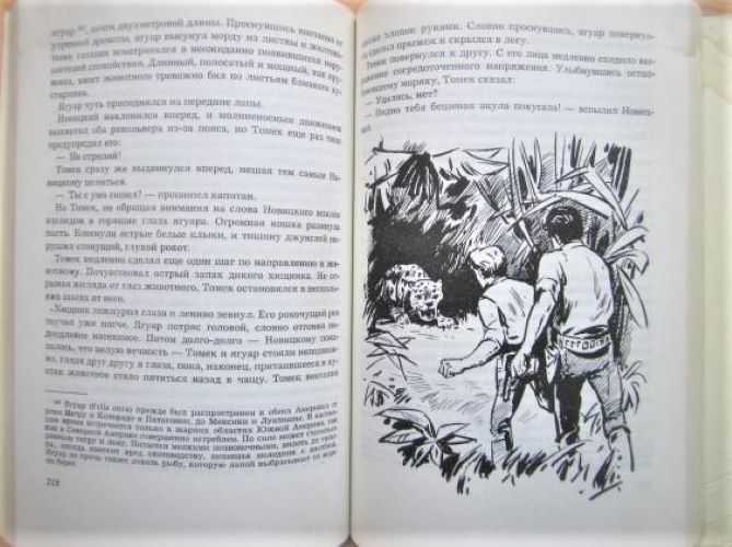 Сцены в лагере в начале книги и описание прибытия Томека, Салли и Новицкого в Бразилию интересны, местами даже захватывают, но в обоих случаях все заканчивается, когда главные герои попадают в джунгли. Половина книги посвящена тому, как белые в сопровождении индейцев пробираются через “зеленый ад” и с какими трудностями и опасностями они сталкиваются в процессе. По моему мнению, писательского мастерства у Шклярского оказалось недостаточно, чтобы отразить истинную природу девственного леса. Конечно, он как обычно подробно описывает флору и фауну Бразилии, но настоящими джунглями из его описания, так сказать, и не пахнет.
