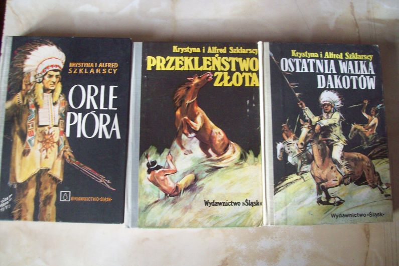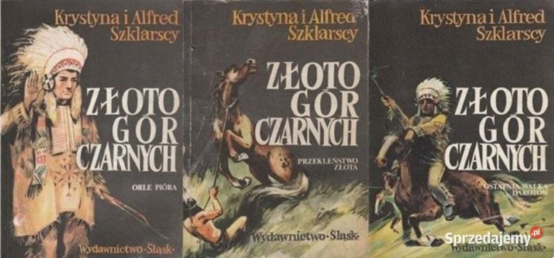 Впервые изданный все тем же издательством “Śląsk” в 1974 году с иллюстрациями ЮЗЕФА МАРЕКА первый том трилогии «Золото Черных гор» -- роман “Orlie Piora” («Орлиные перья»), был переиздан этим же издательством в 1983 (3-е), 1985 (4-е), 1989 (5-е) годах; издательством “Wydawnictwo Dolnośłąskie” – c иллюстрациями КОНРАДА ЦЕСЛЯКА (Konrad Cieślak) издан в 1993 году; издательством “Muza” – c иллюстрациями БАРТЛОМЕЯ КУЗЬНИЦКОГО (Bartłomiej Kuźnicki) – издан в 2006 году.
