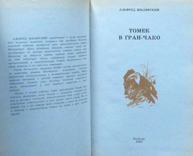 Вот 4-й том из четырехтомника «Альфред Шклярский. Сочинения в 4-х томах» — М.: Терра, 1995. В томе два романа «Томек у истоков Амазонки» и «Томек в Гран-Чако». См. ЗДЕСЬ Информации о книге у меня нет.