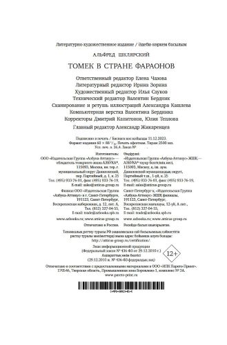 Роман «Томек в гробницах фараонов» был опубликован в 1995 году, через три года после смерти Шклярского (Похоже, что это не совсем так – см. ниже. W). Как известно, книга была закончена его преподобием отцом Адамом Зельгой, так как Шклярский оставил только начало и общий набросок романа. Таким образом, мы имеем дело с ситуацией, очень похожей на ситуацию с романом «Пан Самоходик и неуловимый коллекционер», который был завершен Ежи Игнацюком.