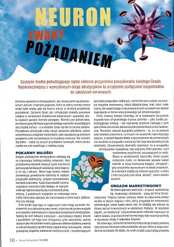 4. Научный обозреватель журнала “Wprost”Ян Страдовский/Jan Stradowski в статье “Neuron zwany pożądaniem/Нейрон, называемый вожделением” поднимает проблему афродизиаков и прочих стимуляторов полового влечения (стр. 10—11).