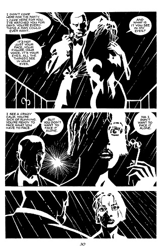 Все создатели киноверсии “Sin City” любят детективы. Черно-белый мир придуманного Фрэнком Миллером Города Греха населяют коррумпированные политики, продажные полицейские, бандиты самых разных мастей, завсегдатаи баров, проститутки и жизненные банкроты. Художник, рисовавший “Sin City”, вдохновлялся брутальными «черными романами», но если кто-то станет искать в его визуальных образах следы творчества Реймонда Чандлера, его постигнет неудача. Фрэнк Миллер обожает грязь, насилие и жестокость подобно героям печатавшихся на грани 50-60-х годов «пальп-криминалов» Джима Томпсона, Ричарда Старка и Чарльза Уильямса. Это оттуда почерпнул Миллер образы своих героев и мрачного города. В этих «грошовых» романах их герои не задумывались над тем злом, которое творили, а если задумывались, то быстро погибали. Там не было кары, потому что не было установленных людьми законов. Всем руководили слепая судьба, жесткая конкуренция и город.